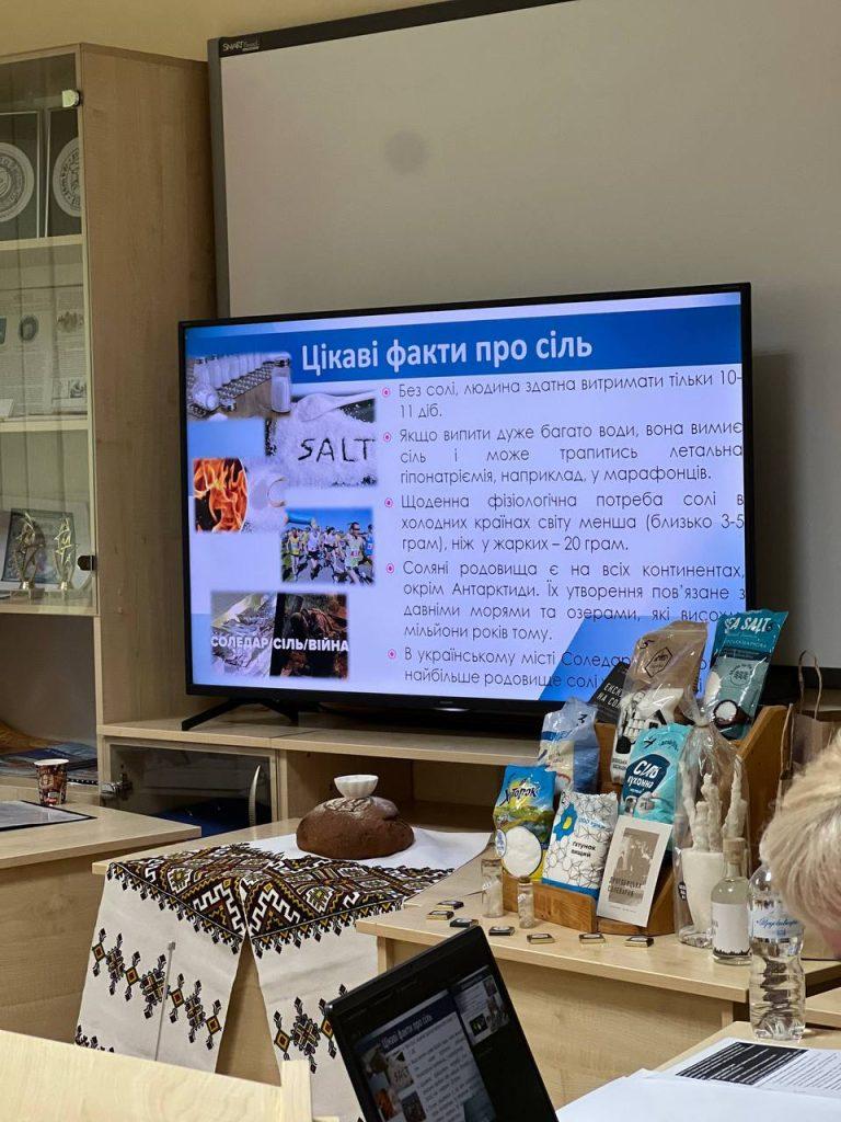 Презентація розпочалася з Балади про сіль, що символізує запеклу боротьбу за українську землю та її ресурси, далі проаналізували історичний аспект солі. Доповідачі розкрили, як звичайна кухонна сіль (натрій хлорид) протягом тисячоліть перетворилася на «біле золото», яке формувало економіки та ставало причиною війн. Було висвітлено ключову роль солі як консерванта в давнину, її значення в Римській імперії (де від неї пішло слово «зарплата» — salarium) та вплив соляних податків на соціальні заворушення, зокрема у Франції.