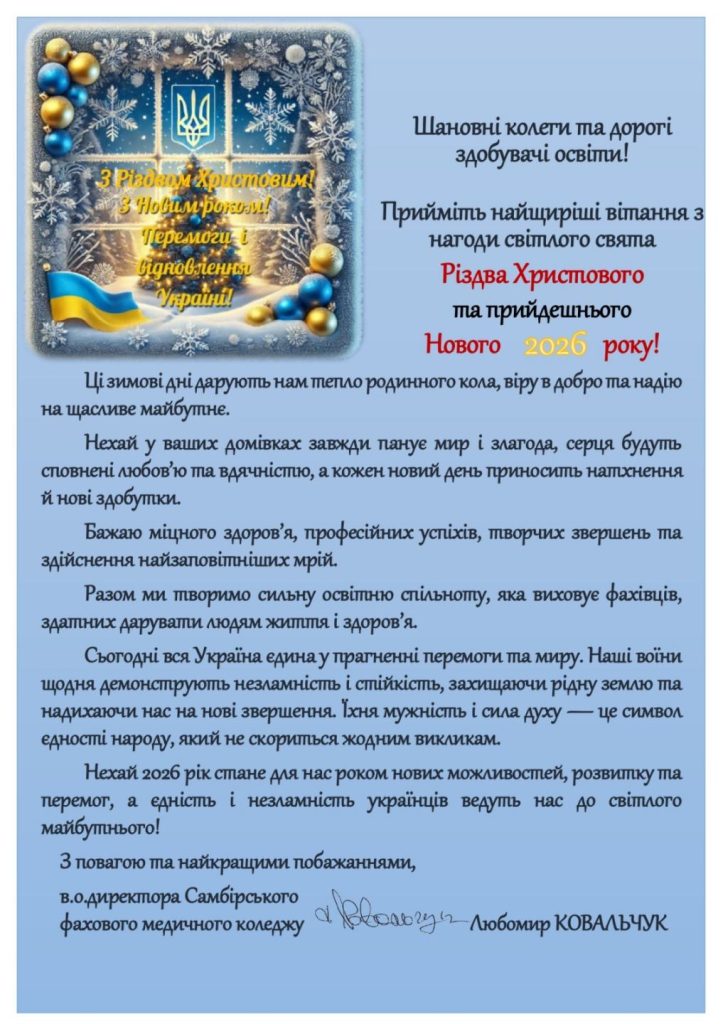Привітання з Різдвом Христовим та прийдешнім Новим роком!